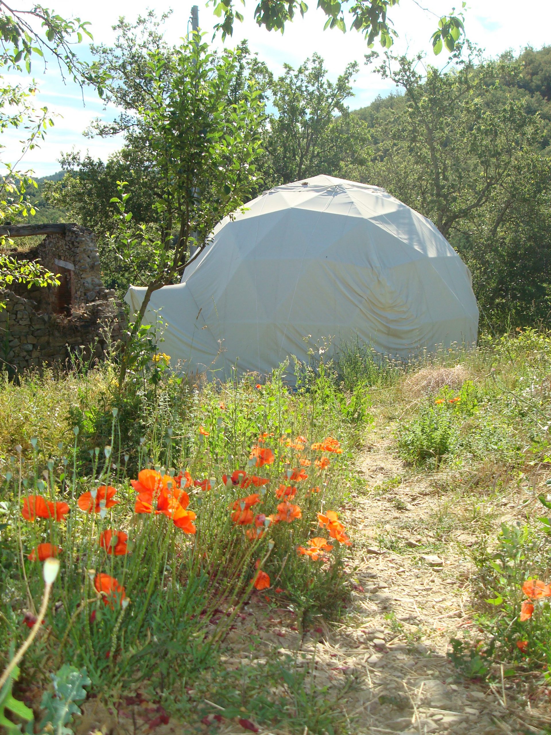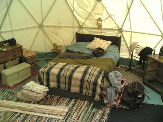 We set up a geodesic dome, that Marcus had from architecture school, as a base to live in and used the old barn structure next door as a Kitchen.
