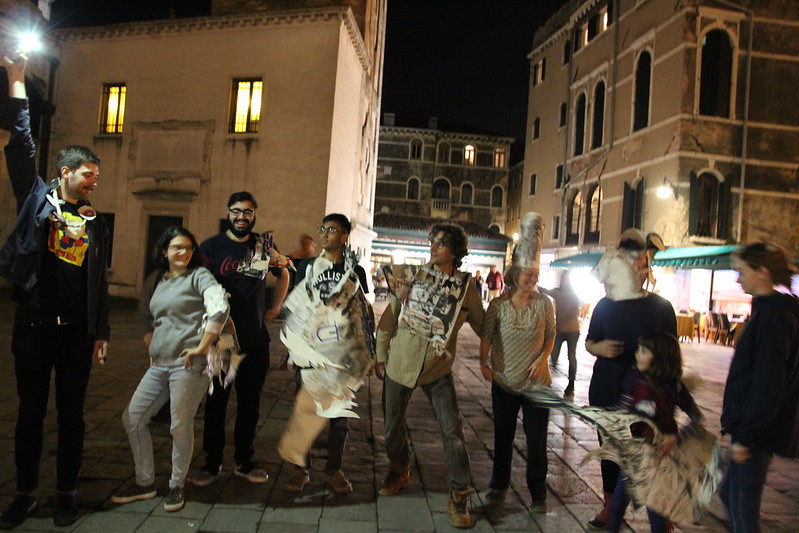 Lucy mark-making and paper form making workshop resulted in a paper clad student who descended from our hostel and walked the streets of Venice!!! Madness 🙂