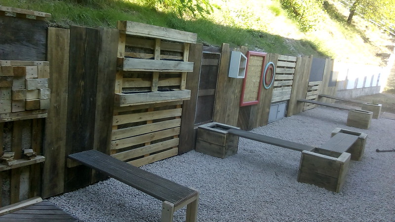 With the inside of the school realised, decorated and constructed by contractors, we turned our attention to the outside, where a vegetable garden was created and a game wall.