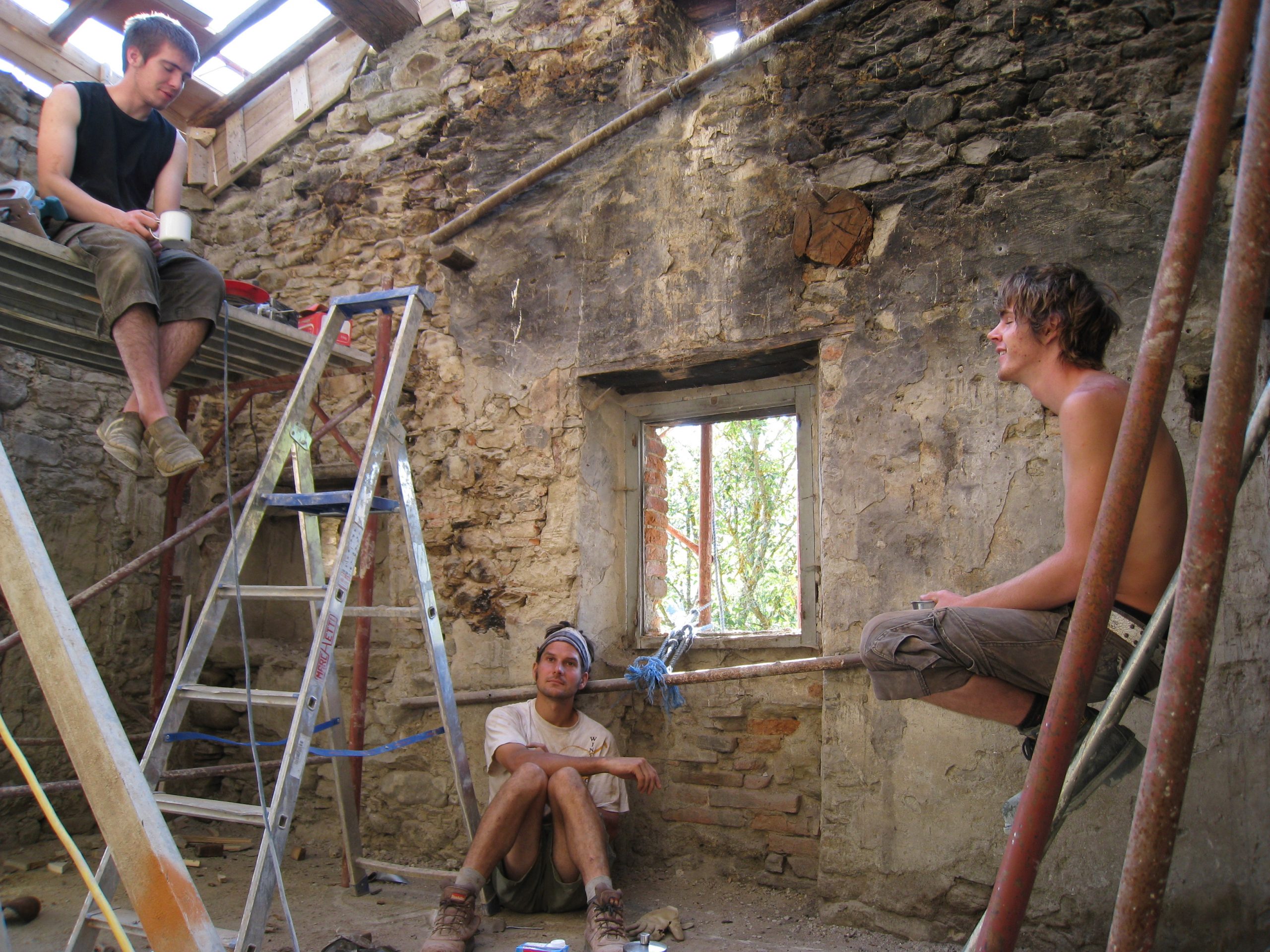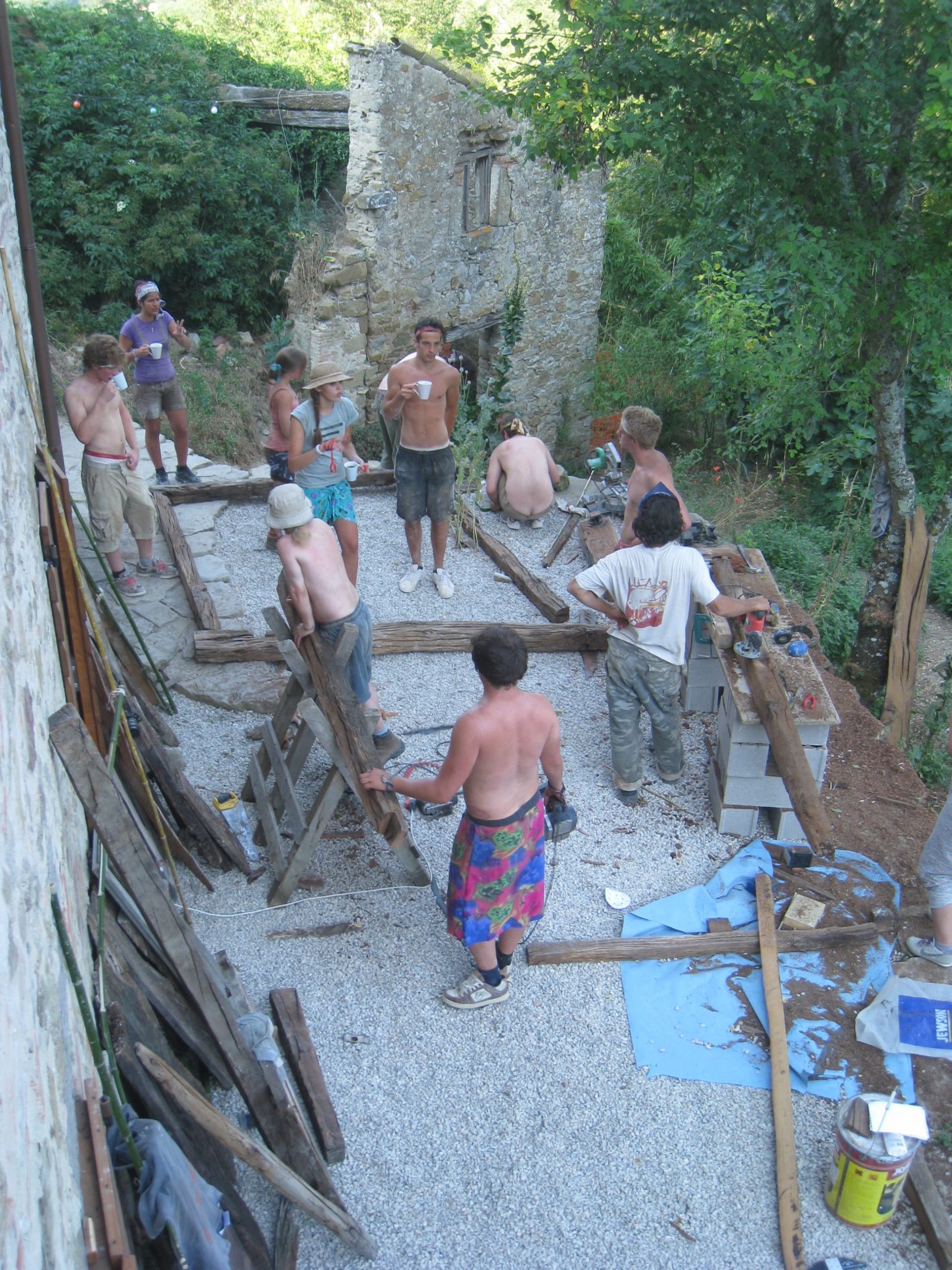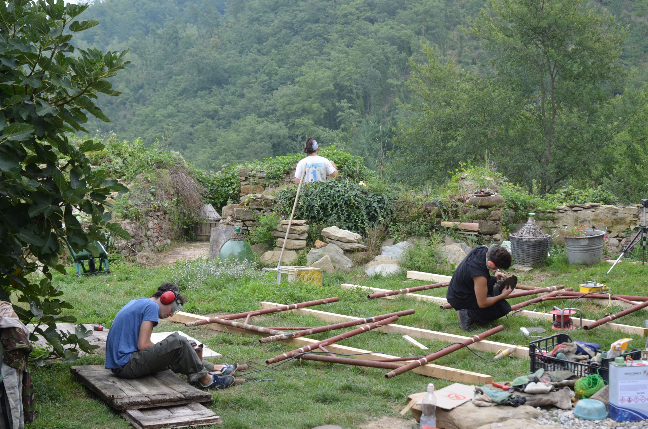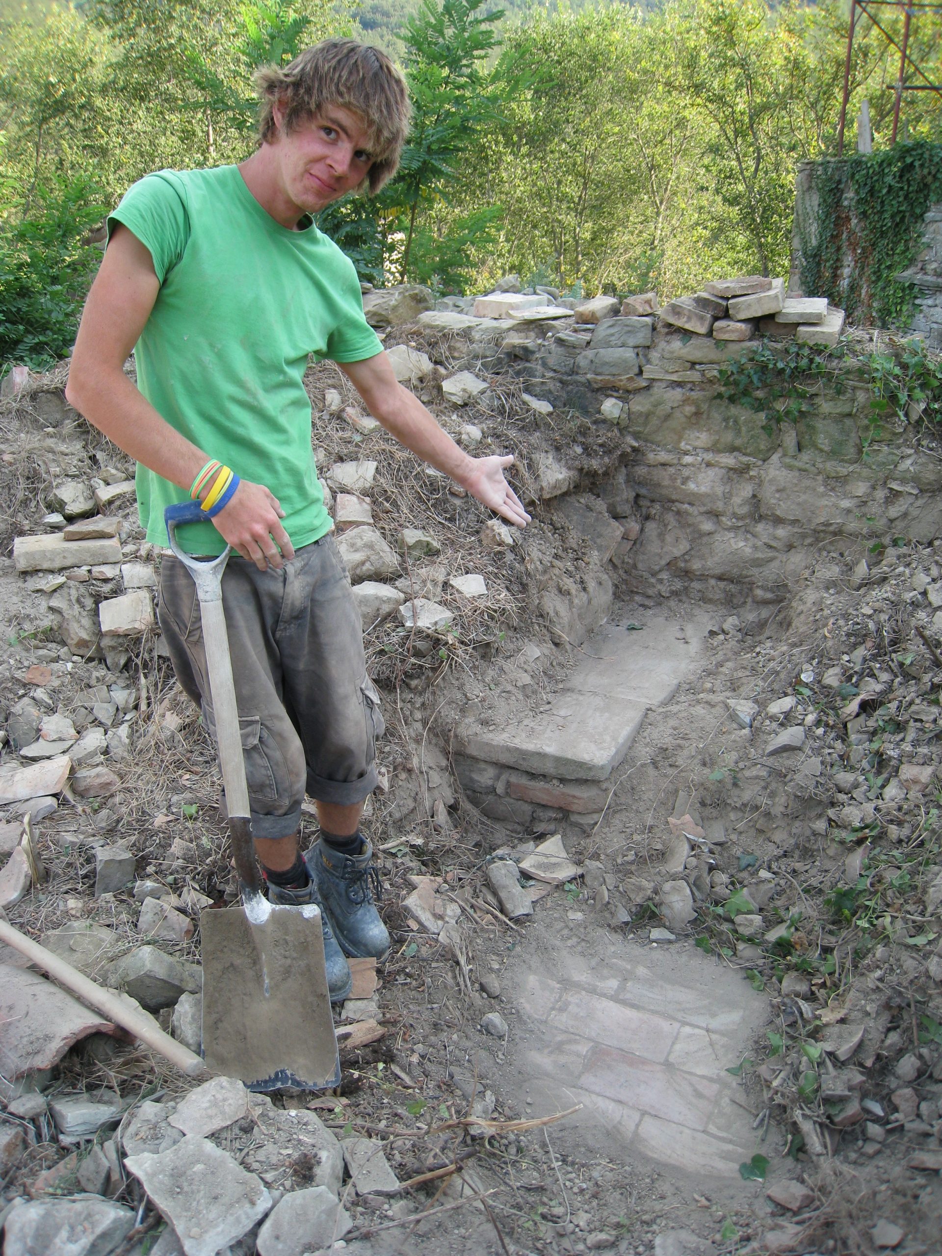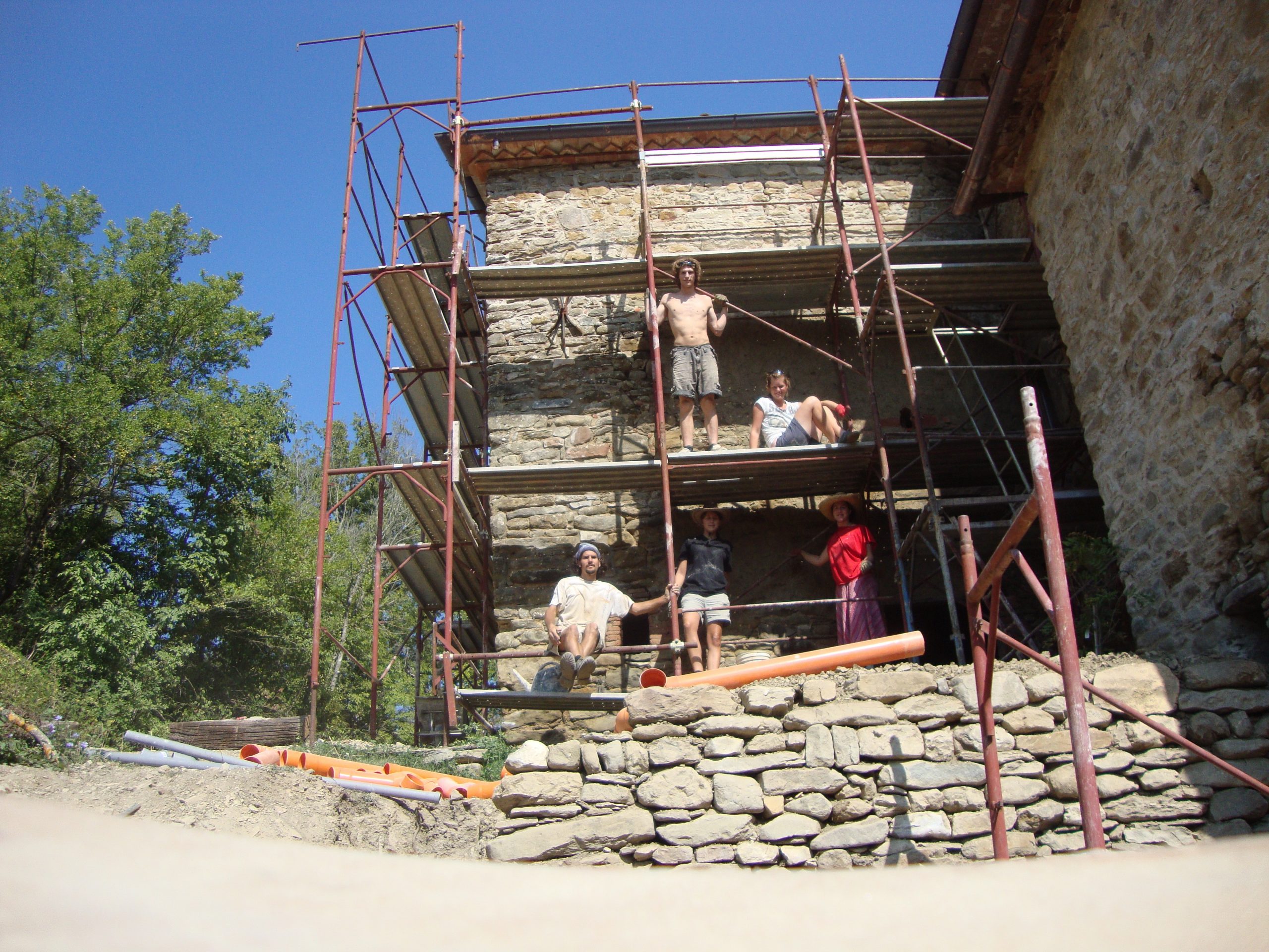 Many workawayers pass through Rimondato, some help with the harvest, others help with some of the many jobs that need doing. These helpers got stuck in to clear one of the spaces of the ruins.