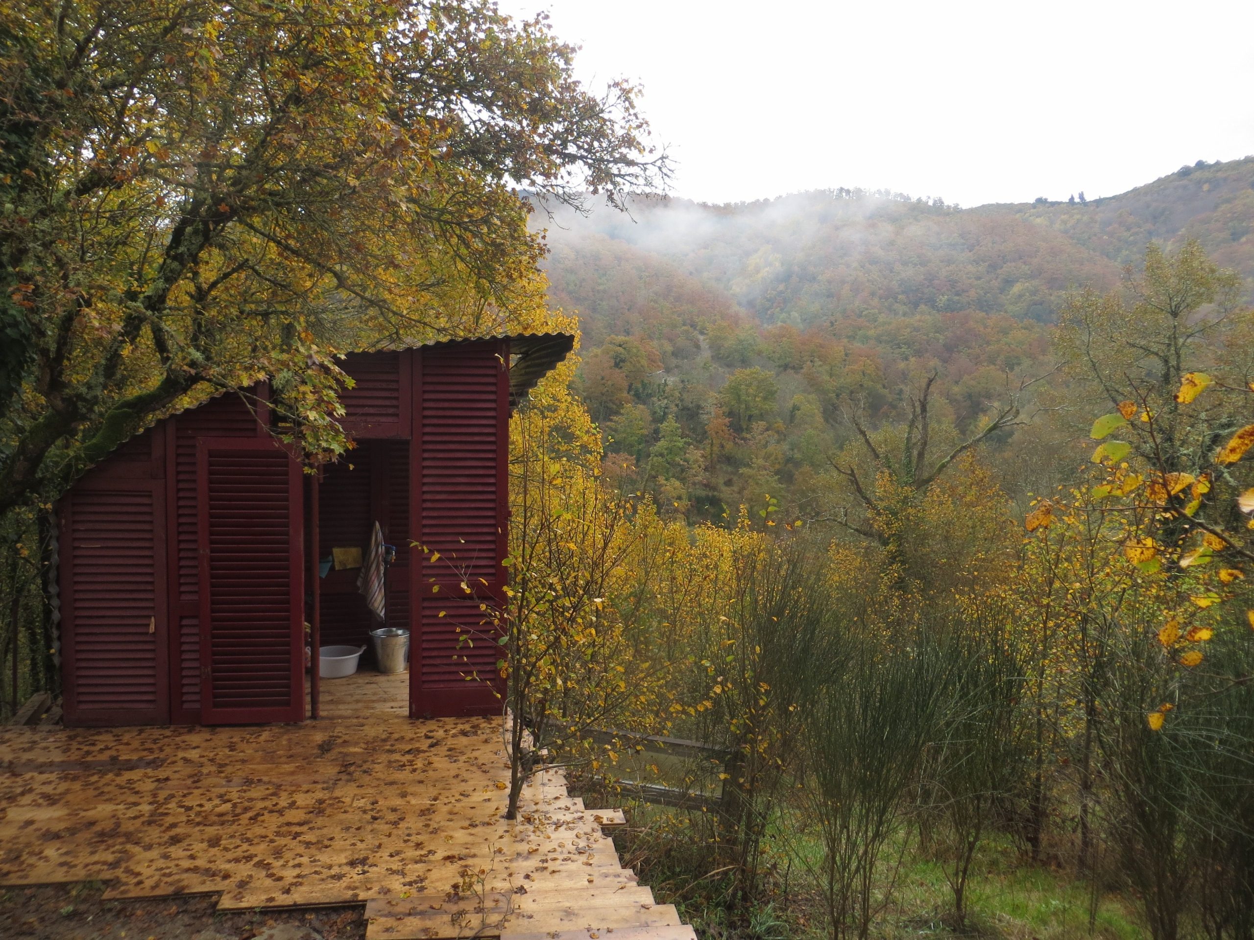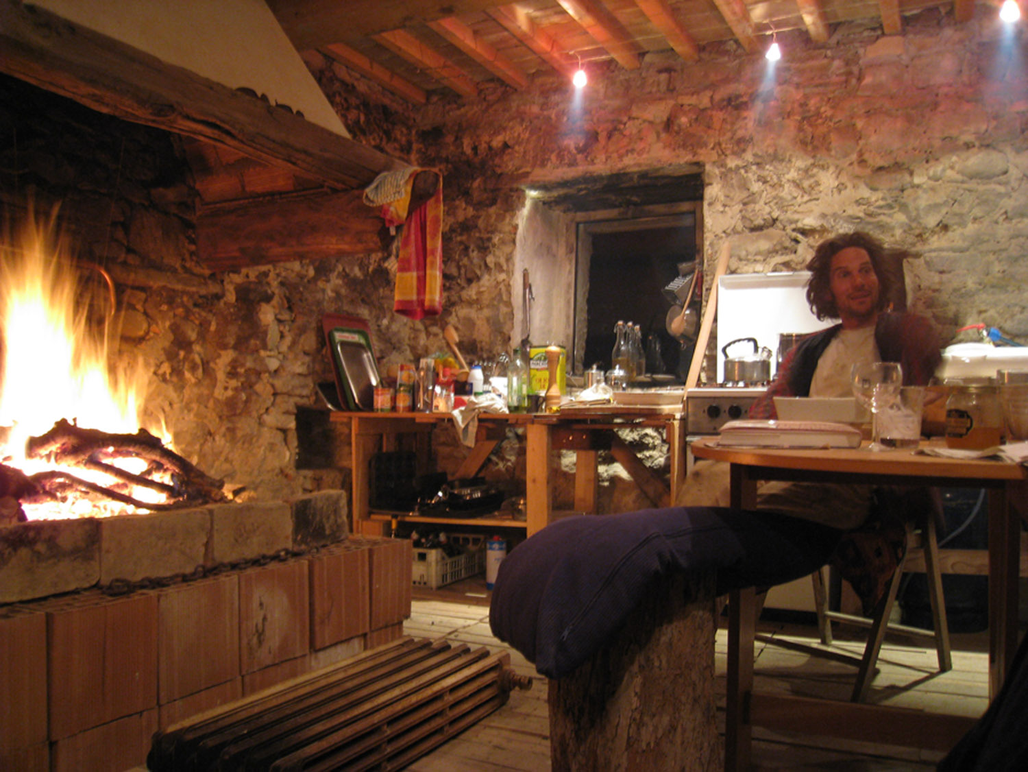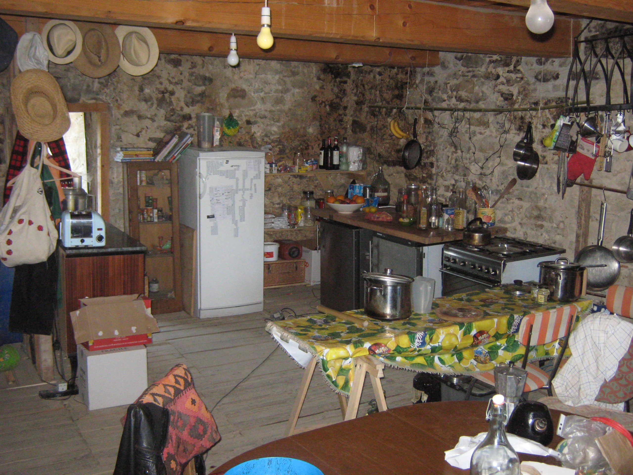 With the arrival of autumn cool and weather we moved in to camp the main house. We moved the kitchen, pallets and all to the main room in the building.