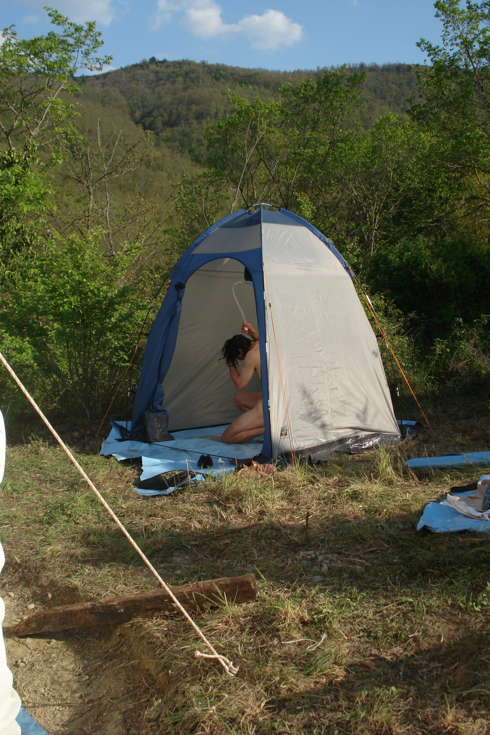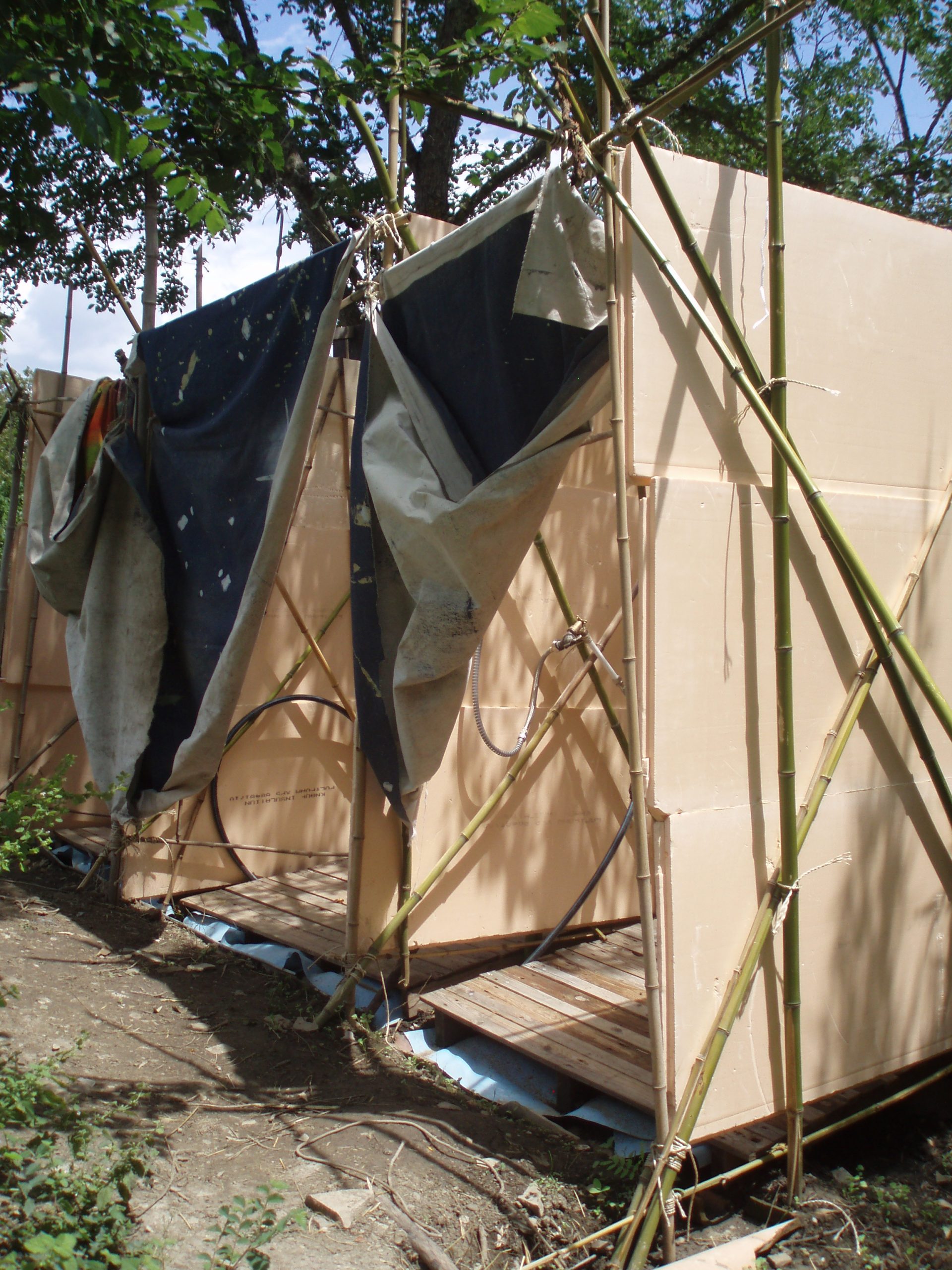Camping is camping and that means outside showers. This was the first iteration of a shower.